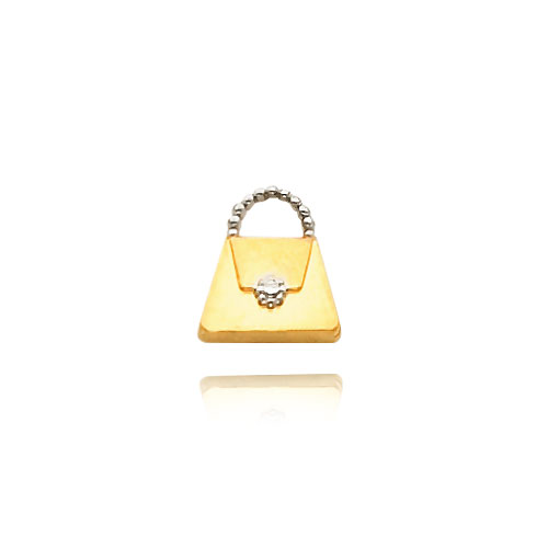 Perfect for any young lady! Pendant is embellished with Rhodium handle and lock. 14K Yellow Gold chain holds cute and trendy purse pendant. Gold finish is polished, as chain features simple springlock clasp. Stylish and adorable!