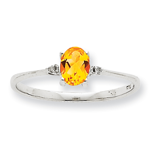 10k White Gold Polished Geniune Diamond/Citrine Birthstone Ring