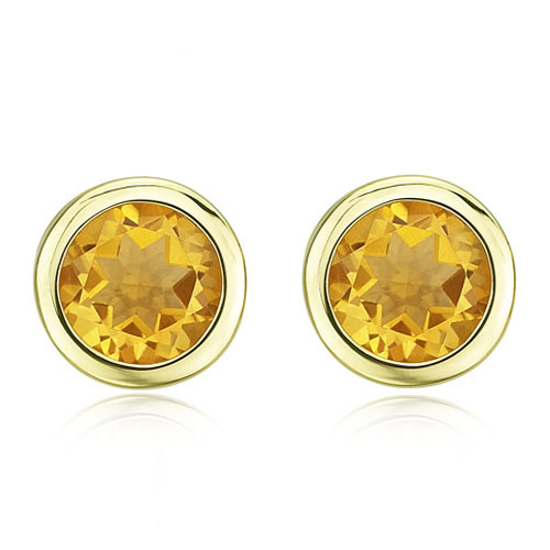 Add subtle style to any ensemble with these beautiful gemstone earrings. Round Citrine stones are bezel set in Yellow Gold for a simple, yet elegant look. Also available in White Gold.
