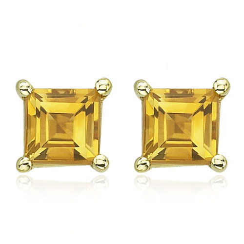 Add classy color to any ensemble with these subtle gemstone earrings. Square Citrine stones are prong set in Yellow Gold for a simple, yet beautiful look.