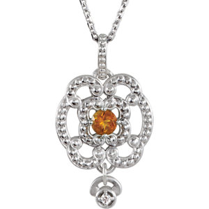 Sterling Silver Necklace Complete with Stone Citrine Polished Citrine and .015 CTW Diamond Necklace