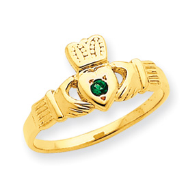 14K Gold Green Cubic Zirconia Claddagh Ring