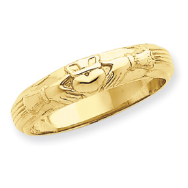 14K Gold Mens Claddaugh Ring