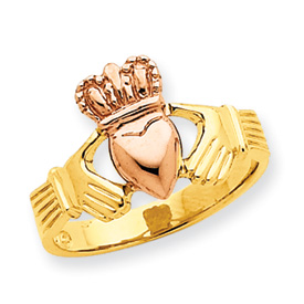14k Two-tone Polished Claddagh Ring