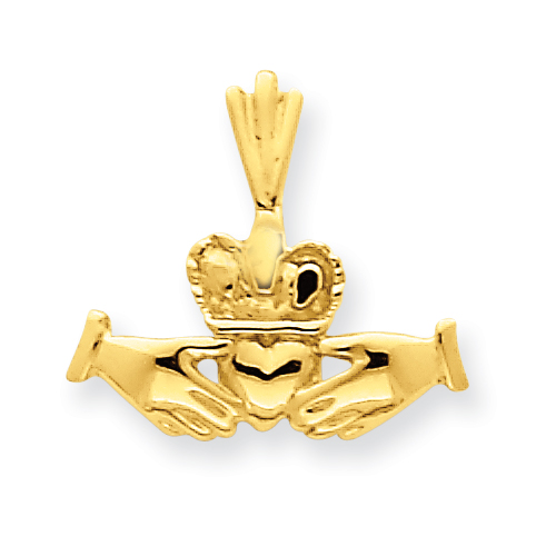 14K Yellow Gold Polished Claddagh Pendant