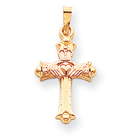 14K Two-tone Gold Claddagh Cross Pendant