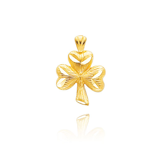 14K Yellow Gold Textured Diamond-Cut Shamrock Pendant