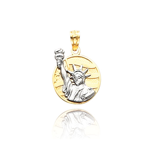 14K Gold Two-Tone Small Lady Liberty on American Flag Disk Pendant