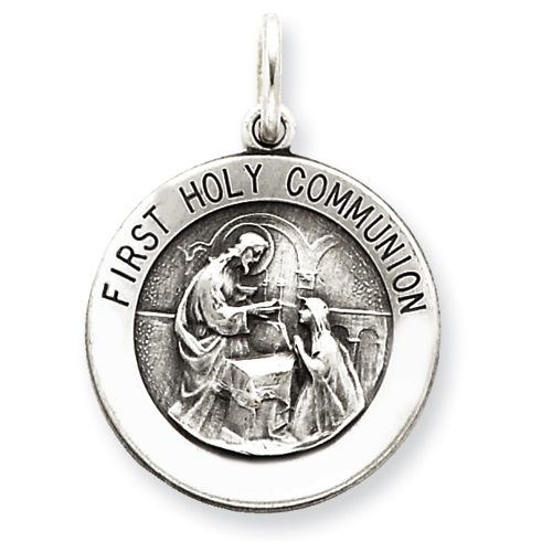 Sterling Silver Antiqued First Holy Communion Medal
