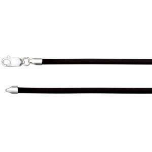 Sterling Silver 22.00 INCH Polished BLACK RUBBER NECKLACE