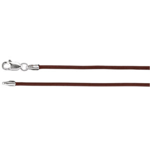 Sterling Silver Necklace 20.00 Inch Brown Leather Cord