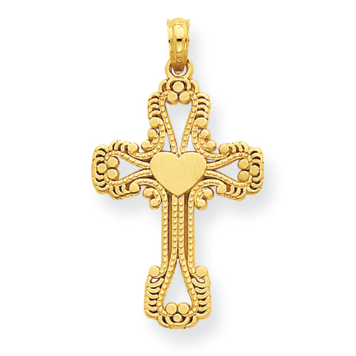 14K Beaded Cross with Heart Pendant