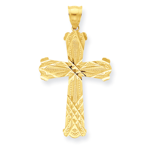 14K Diamond-cut Diagonal Lined Cross Pendant