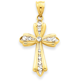 14K Gold And Rhodium Diamond-Cut Cross