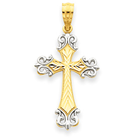 14K Gold And Rhodium Diamond Cut Cross Pendant