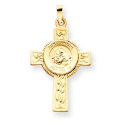 14K Gold Cross With St Anthony Medal Pendant