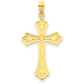 14K Gold Diamond -Cut Cross Pendant