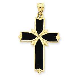 14K Gold Enameled Latin Cross Pendant