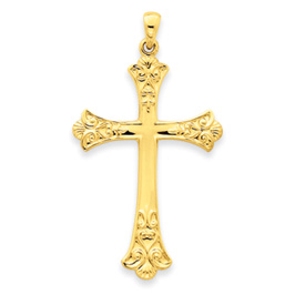 14K Gold Fleur de lis Cross Pendant