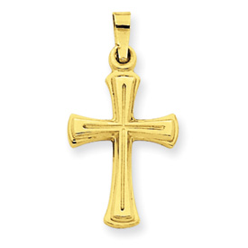 14K Gold & Rhodium 3-D Hollow Cross Pendant