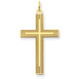 14K Gold & Rhodium 3-D Hollow Cross Pendant