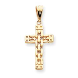 14K Gold Polished Panther Style Cross Pendant