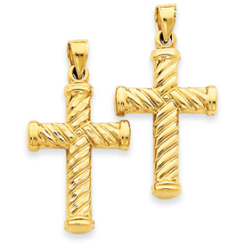 Picture of 14K Gold Reversible Diamond Cut Cross Pendant