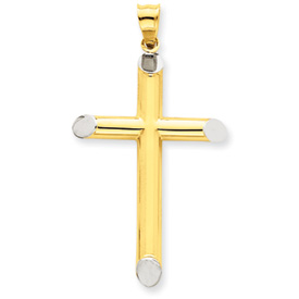 14K Gold & Rhodium 3-D Hollow Cross Pendant