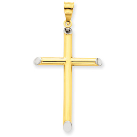 14K Gold & Rhodium 3-D Hollow Cross Pendant