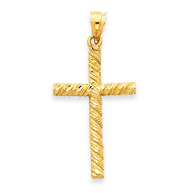14K Gold Satin & Diamond -Cut Cross Pendant