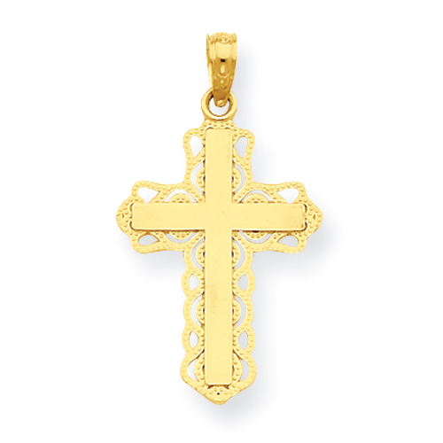 14K Lace Trim Cross Pendant