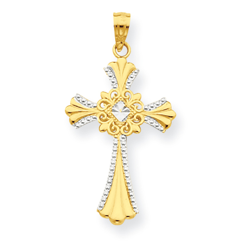 14k & Rhodium Cross Pendant