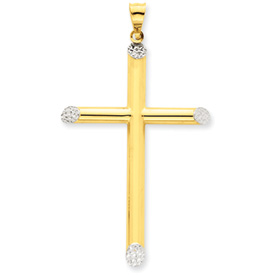 14K Two-Tone Gold 3-D Hollow Cross Pendant