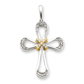 Picture of 14K Two-Tone Gold Diamond Cross Pendant