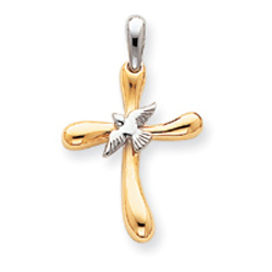 14K Two-Tone Gold Dove Cross Pendant