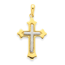 14K Two-Tone Gold Fleur De Lis Cross Pendant