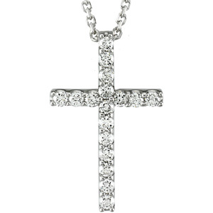 14K White 1/3 CTW Petite Diamond Cross W/chain