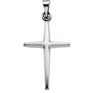 14K White Gold Round Blue Sapphire & Diamond Cross Pendant