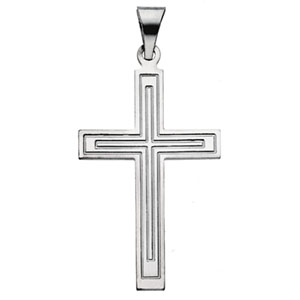 14K White Gold Round Blue Sapphire & Diamond Cross Pendant