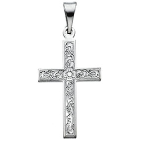 Picture of 14K White Gold Cross Pendant With Design
