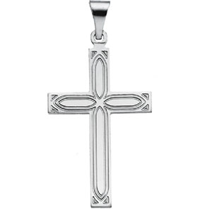 14K White Gold Round Blue Sapphire & Diamond Cross Pendant