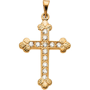 14K Gold Diamond Cross Pendant
