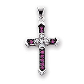 Picture of 14K White Gold Diamond & Ruby Cross Pendant