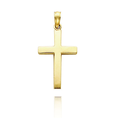 14K Yellow Gold Simple Polished Flat Cross Pendant