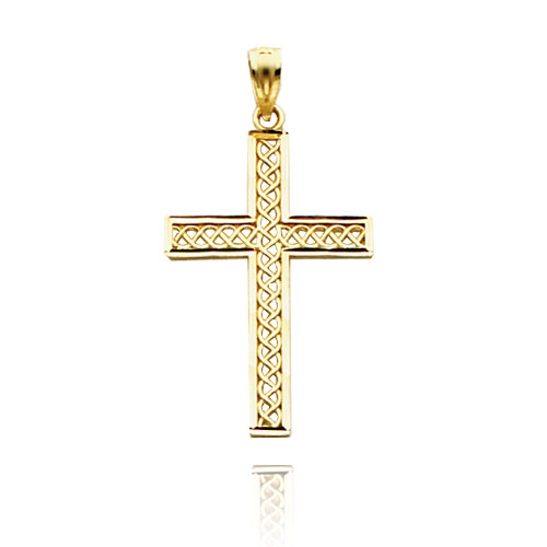 14K Yellow Gold Wavy Pattern Cross Pendant