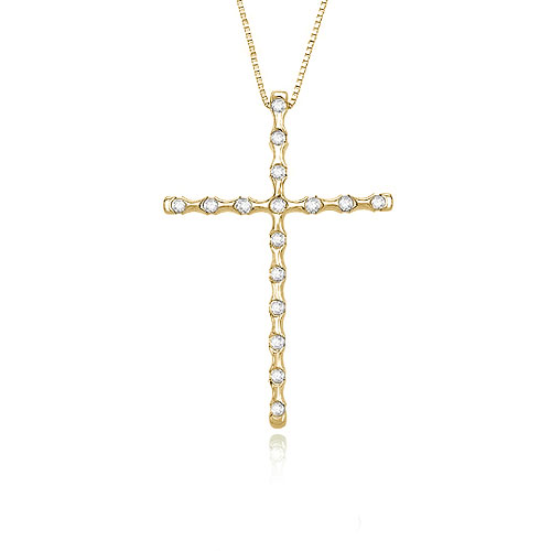 Add shimmering style to any ensemble with this beautiful cross pendant. A 16" Chain leads to a polished Yellow Gold cross that is adorned with shiny, round Diamonds for an elegant look. Also available in Yellow Gold.