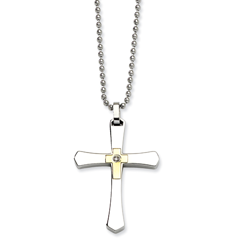 Stainless Steel 14k Gold w/ Diamond Cross Pendant 22in Necklace chain