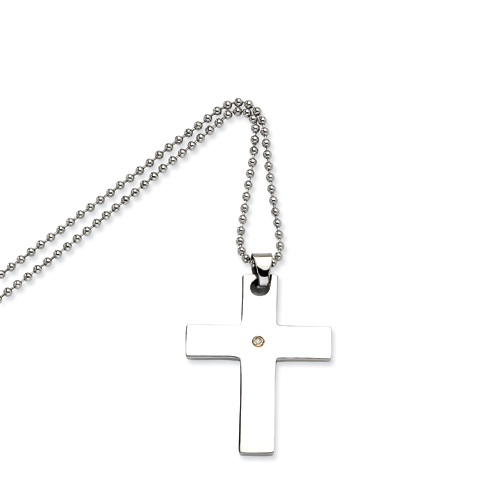 Stainless Steel 14k Gold w/ Diamond Cross Pendant 22in Necklace