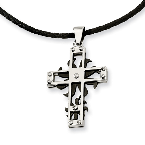 Stainless Steel And Black IP-plated Spinner Cross Pendant