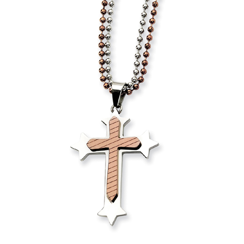 Stainless Steel And Chocolate IP-plated Cross Necklace